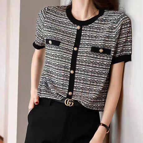 女性らしさを演出するツイード風デザインがチャームポイントの春夏のおすすめエレガントブラウスが新登場♪