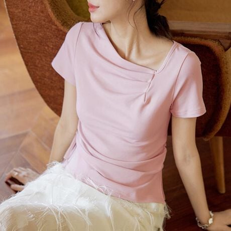 コットン生地を使用したアシンメトリーネックのカットソーが新登場!