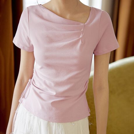 コットン生地を使用したアシンメトリーネックのカットソーが新登場!