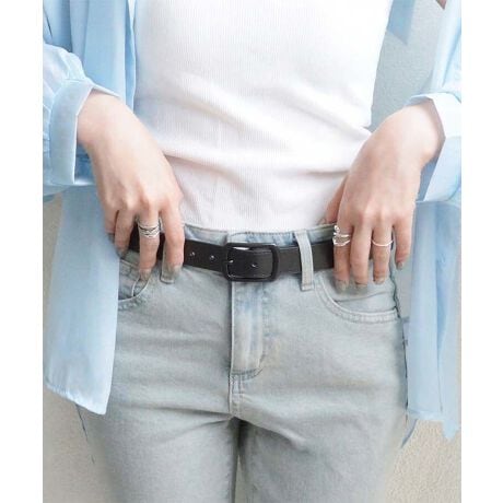 程よい幅とスクエアバックルが、通勤コーデにもカジュアルにもフィット。