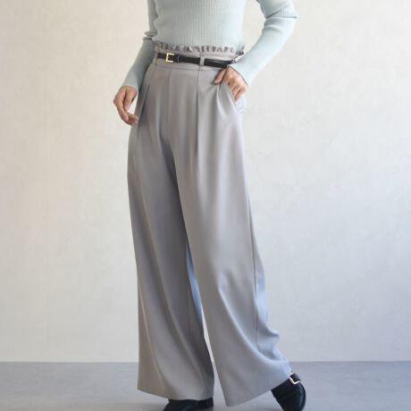 2025秋冬新作 合皮ベルト付きフリルタックワイドパンツ