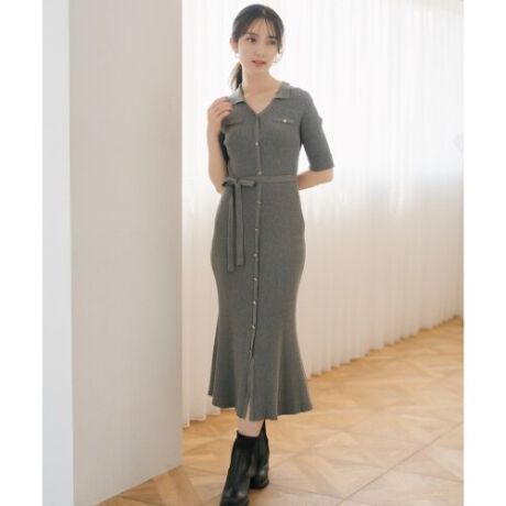 「ポロ襟×マーメイドラインで叶える、美シルエットワン ポロ衿ニットワンピース [型番:MM537410]