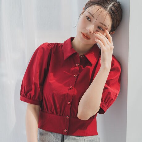 ふんわりとしたパフスリーブが可愛らしいクロップドシャツブラウス。ウエストに切り替えを加えることでメリハリ感のあるシルエットに。背中で結ぶリボンもアクセントをプラスしてくれます。キレイめにもカジュアルにも合わせやすく、幅広いコーディネートに活躍してくれる1着です。■fabric透け感[無し]裏地[無し]伸縮性[有り]生地の厚さ[普通]