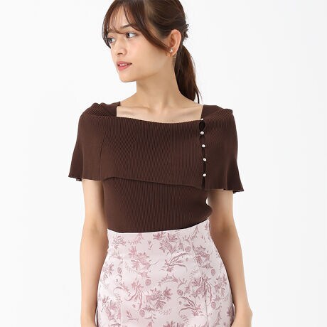 ケープ風のデザインが女性らしさを引き立てるニット。前後2wayで着用できるので、その日の気分に合わせたスタイリングを楽しめます。アシンメトリーな金釦がポイント。休日のお出かけコーデに重宝したいアイテムです。■fabric透け感[無し]裏地[無し]伸縮性[有り]生地の厚さ[厚手]