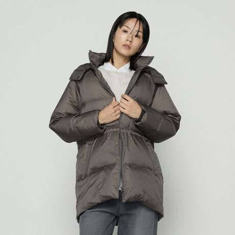 軽く暖かいリラックス感のある、フード取り外し可能なダウンコートです。