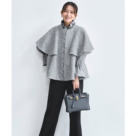 羽織るだけでサマになる、上品な印象のツイードケープジャケット。