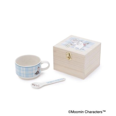 ■木箱入りマグ・・・ギフトにぴったりな木箱入りスタッキングマグと磁器スプーンのセット。