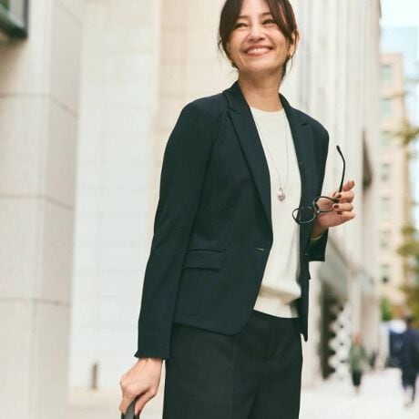 ソフトな着心地の正統派で知的さが際立つベーシックテーラードジャケット。
