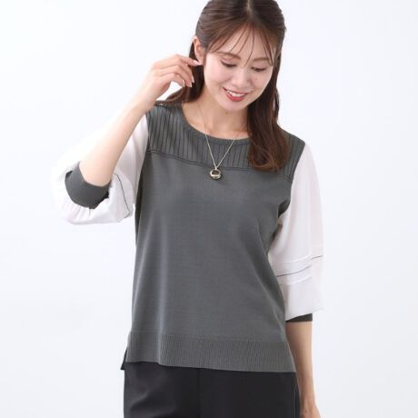 定番のニットにジョーゼット袖を組み合わせたトップス。
