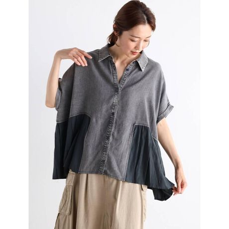 ■柔らかなテンセルデニムとプリーツを組み合わせたデザインブラウス