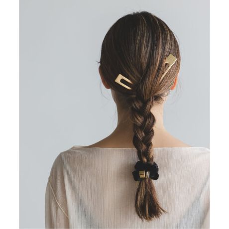 テクスチャーの質感ちがいが楽しめるモダンな印象のヘアピンとベロア素材のシュシュのセットアイテム。