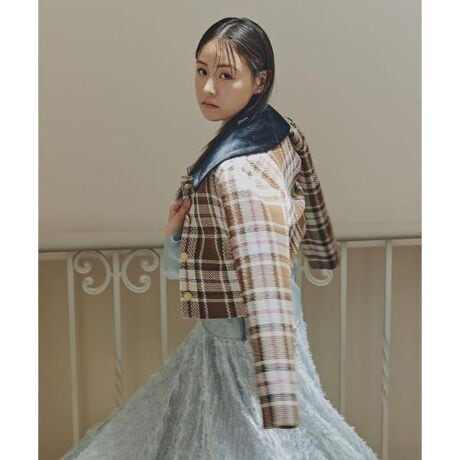 大きめのチェック柄にアクセントカラーを入れた華やかなジャケット。ざっくり感とぽこぽことした凹凸織りの表面感があるループチェック素材を使用。コンパクトシルエットで、スタイルアップが狙えます。襟は取り外しができ、ノーカラーとしても着用できるデザイン。ベロア素材の襟と同素材のチェック柄の襟が付属する、3way仕様。同素材のスカート(店舗商品番号125-5220026)とのセットアップスタイルや、デニムやパンツとのコーディネートもおすすめです。※撮影時照明の関係により、色味が違って見える場合がございます。またパソコン・スマートフォンなどの環境により、若干製品と画像のカラーが異なる場合もございます。予めご了承ください。商品の色味は、商品単品画像をご参照下さい。※商品画像はサンプルのため、色味やサイズ等の仕様に変更がある場合がございますので、予めご了承ください。
