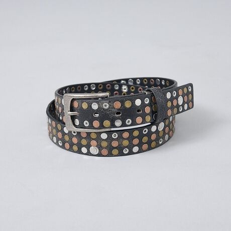 スタッズデザインを施し、ユーズド感のある仕上がりが魅力のレザーベルト。