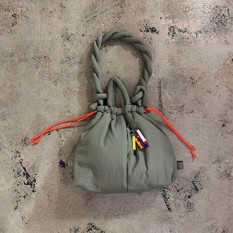 ロングショルダーは、そのまま斜め掛けはもちろん、ねじってチェーン状にしたり、下部のループに通してボンサック風にしたりと、アレンジは自由自在。