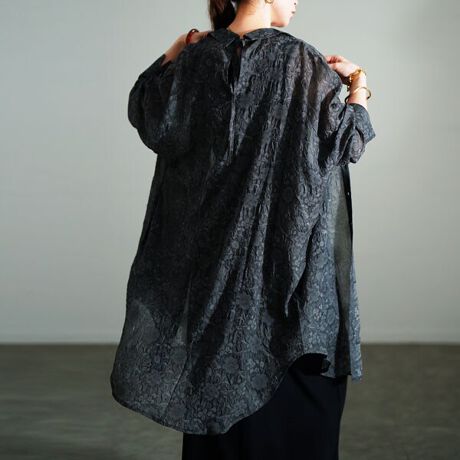映える、花柄シアーロングシャツ。ドロップショルダーのゆったりとした身幅のリラクシーな着心地が生む、こなれた雰囲気。ボタンを閉めてシャツとしてはもちろん、サッと羽織るだけでワンランク上の装いに。バックリボンが後ろ姿に抜け感&女性らしさを演出。ヒップラインもすっぽり隠すロング丈は前後差でスタイルアップ効果&軽やかな印象。ほどよい透け感で着こなしやすく、インナーとのレイヤードが映えるアイテムです。