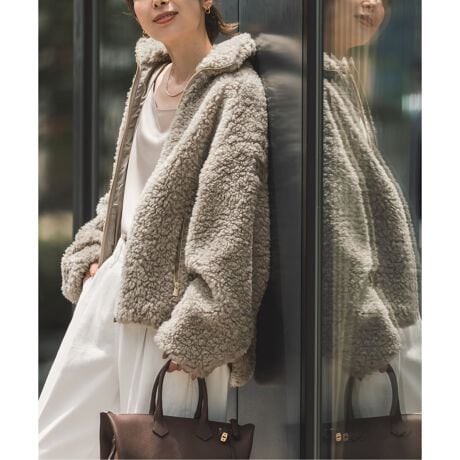まるでウールのような温かみがある質感のポリエステル糸を使用したシープ調ボアブルゾン。
