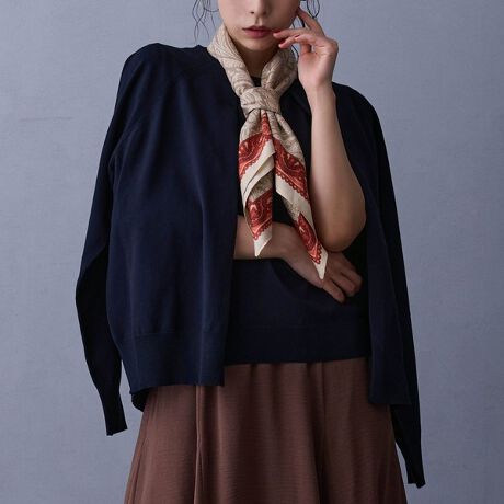 レイヤードしたようなデザインは、着方によってカーディガンを肩から羽織ったような仕様にもできます。簡単にこなれて見え、人と差のつくデザインアイテムです。