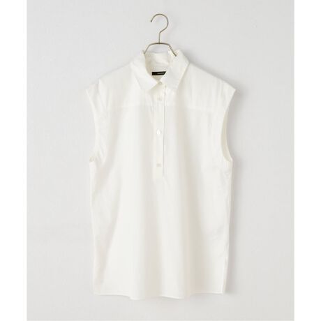 さらっとしたクリアさとナチュラルな光沢感がある綿素材を使用したノースリーブシャツ。