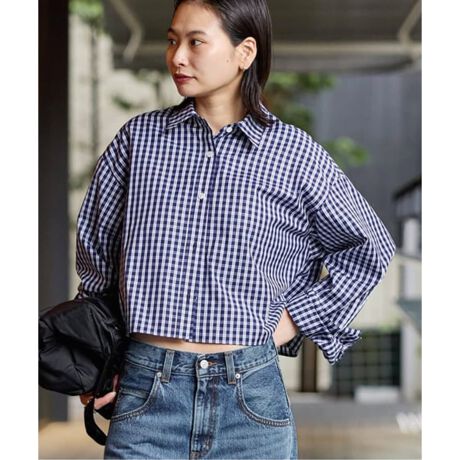 チェックが目を引くベーシックなクロップド丈のシャツ。