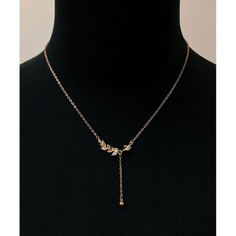 リーフデザインのチャームとラインストーンがかわいいネックレス。パーティーや華やかな場面はもちろんデニムやワンピースにも合わせやすく華麗に演出してくれるアイテム。