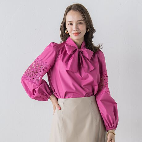 レースドッキングの華やかブラウス。