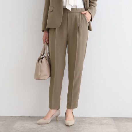 きちんと感がありながら着やすいストレッチ性もある素材を使用したタックテーパードパンツです。