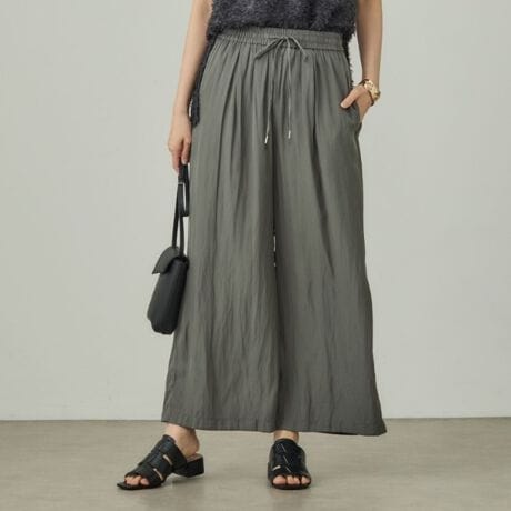 薄手で落ち感のある素材にギャザー分量を入れる事で、肌離れし、夏に涼しく穿いていただけます。