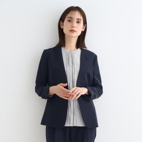 【洗える/定番スーツ】ストレッチノーカラージャケット