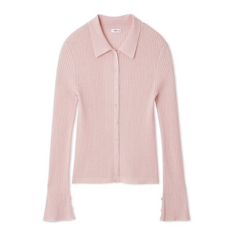 <b>【ほんのり透け感と軽さのあるポロニット。前開きデザインで、カーデとしても活躍】</b>