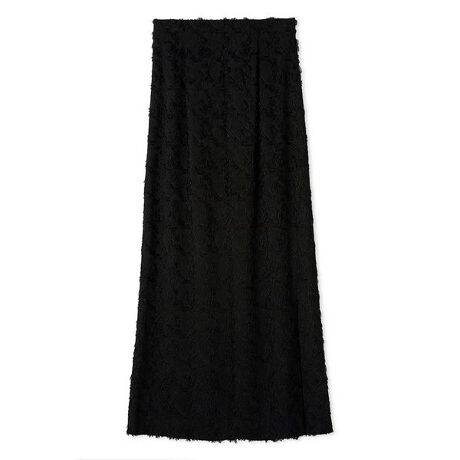 リーンなシルエットのスカートは、リッチなカットジャカードの千鳥柄モチーフがエレガント。