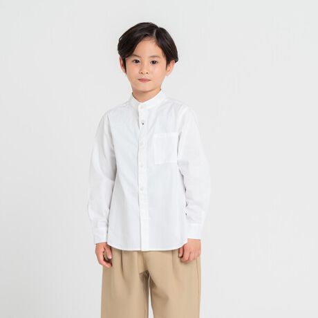 どちらも印象づけられるバンドカラーの長袖シャツです。
