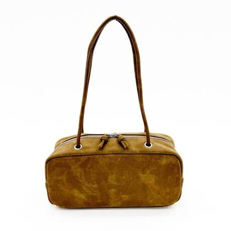 スエード調の合成皮革を使った横長バランスのボストンバックです。