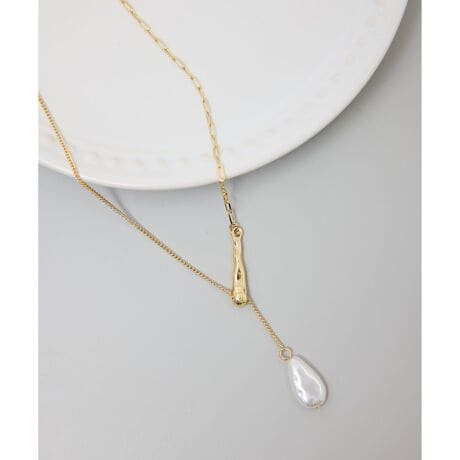 ・バロックパールと華奢なチェーンが織りなす、Y字ラインネックレス。