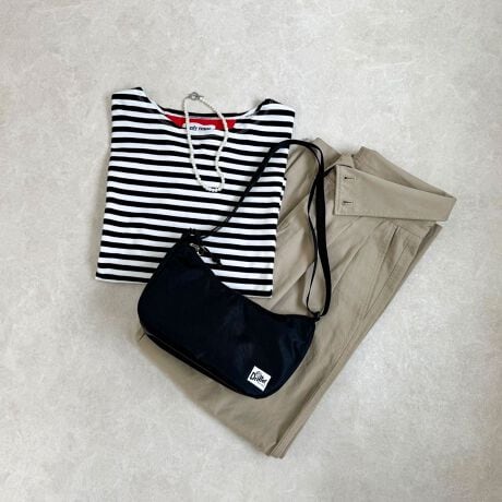 ・横長シルエットのシンプルなデザインでどんなスタイルにも合わせやすいです