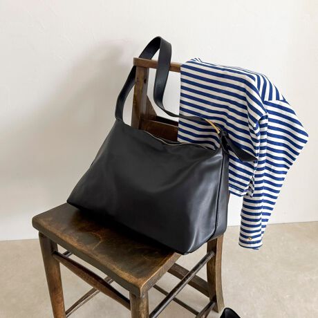 ・柔らかくしなやかなフェイクレザーを使用した、大容量のビッグショルダーバッグ