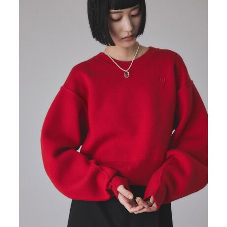 適度にハリのあるセッケツ編み地の風合いが、身頃やボリューム袖のシルエットを立体的に表現。