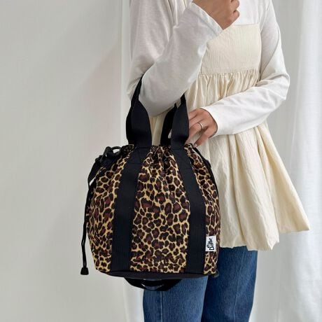 ・口を閉じて巾着型に、開くとトート型になり、コーディネートに合わせてシルエットが変えられます