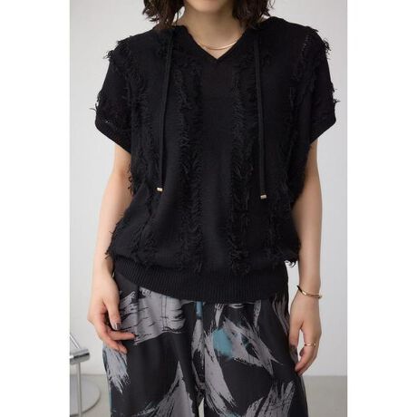 ラインフリンジニットトップス