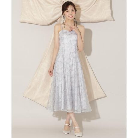 レイヤードで華やぐ、着回し力抜群のフラワーチュールドレス【Design】・繊細なラインフラワー柄とチュールの切り替えが、動くたびに華やかさを演出するドレス♪・アジャスター付きの肩紐で着丈を好みに合わせられ、上品なシルエットが叶います。・サイドファスナー仕様で着脱も簡単、ストレスフリーな着心地も魅力◎・フリルブラウスやボレロをレイヤードすれば、シーンに合わせて着回し自在。・1枚持っていれば、雰囲気を変えて何度でも活躍する頼れる一着です♪【Fabric】・程よい透け感のチュール素材に裏地付きで、軽やかさと安心感を両立。・ブルー、ブラウンの2色展開になります。【Care】ドライクリーニング