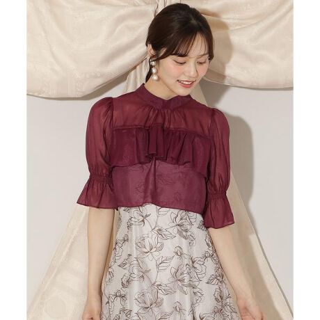 【カスタムドレスシリーズ】1枚プラスで印象チェンジ、レイヤードブラウス【Design】・キャミワンピースの上からレイヤードすることで、ぐっと雰囲気を変えて楽しめるショート丈ブラウス♪・高めの位置に入ったフリル切替が、自然にスタイルアップを叶えてくれます。・長めの袖が腕まわりをさりげなくカバーし、上品に着こなしやすい一枚です!・袖口はゴム仕様になっているので、程よいフィット感◎・後ろボタンで着脱可能。・コーデに合わせて自由にカスタマイズして、自分だけの着こなしを楽しんでください♪【Fabric】・上品な光沢感とハリのあるポリエステル素材を使用。・ベージュ、ピンク、ボルドー、ブルー、ブラックの5色展開となります。【Care】ドライクリーニング