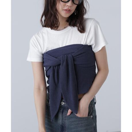柔らかいタッチのニットソー素材のベアビスチェ。トレンドのリボンディテールがコーディネートのアクセントになります。滑りの良いニット裏地付きなので、レイヤードしやすさと着脱しやすい仕様に。程よくフィットするサイジングで伸びの良い素材です。暑い時期はコンパクトTシャツやタンクトップに重ねて、秋にはシャツの上からレイヤードして一癖あるコーディネートが叶います。※モデルの着用画像の場合、光の当たり具合により、実際の色味と異なって見えることがございます。色味は、商品単体の画像をご参照ください。
