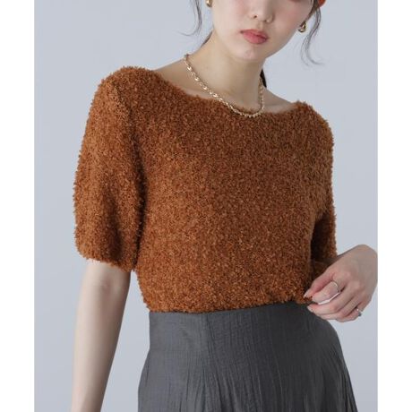 チョウチョのような立体感のあるファンシーヤーンを使った半袖ニット。からっとした柔らかい肌触りで暑い時期でも涼しく着ていただけます。ほどよいボリューム感のあるシルエットが、フェミニンでトレンド感のある印象。ややゆとりのあるシルエットなのでトップスインしてもバランスが取りやすいサイズです。寒い季節にはアウターのインナーとしても活躍し、インナーに長袖カットソーと合わせるとレイヤードスタイルが楽しめます。デニムパンツ、ミニスカート合わせもおすすめです。※モデルの着用画像の場合、光の当たり具合により、実際の色味と異なって見えることがございます。色味は、商品単体の画像をご参照ください。
