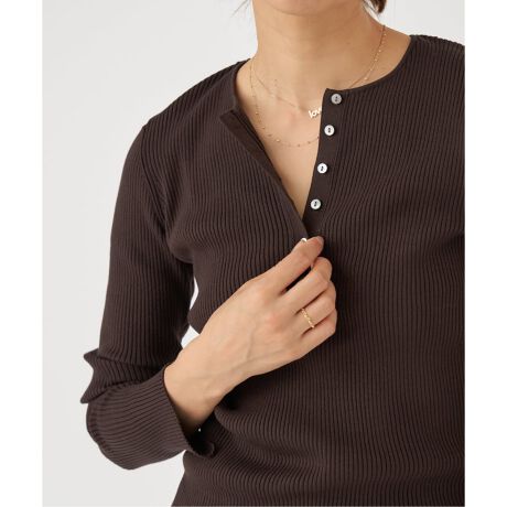 程よく身体のラインを拾い、秋冬のアウターやジャケットのインナーとしても活躍します。