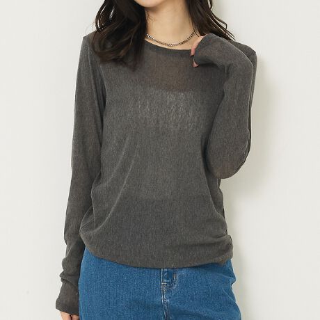 [型番:72519020827]【Design】程よいサイズ感のシンプルロンT。綿ライクな素材感で肌あたりがソフトで優しい着心地です。インナーとして大活躍な一枚。【Fabric】綿ライクなチュール生地。程よい透け感で柔らかく着心地の良い素材です。【Styling】同型のラメ入りタイプもあるので、お好みの組み合わせでレイヤードを楽しむのもおすすめです。薄手なので、早めからベストのインナーなどにも活躍します!