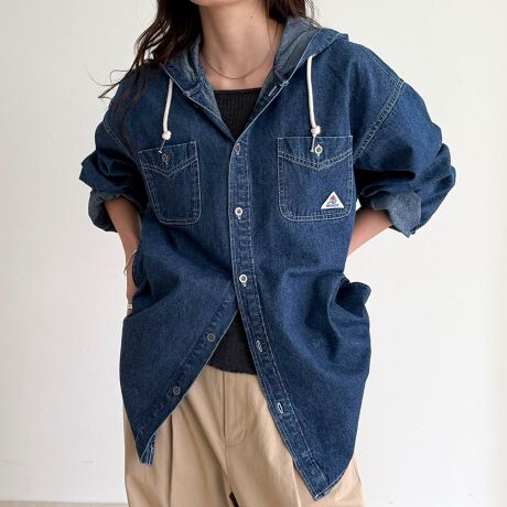 ・柔らかなデニム素材を使用し、ライトな着心地でロングシーズン活躍するデニムフーディーシャツ