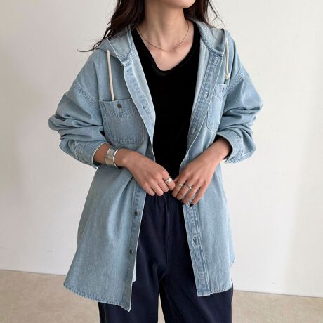 ・柔らかなデニム素材を使用し、ライトな着心地でロングシーズン活躍するデニムフーディーシャツ
