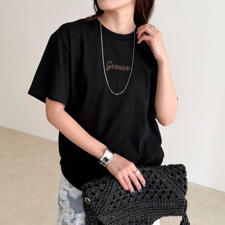 シンプルながら存在感のあるチェーン刺繍半袖Tシャツ