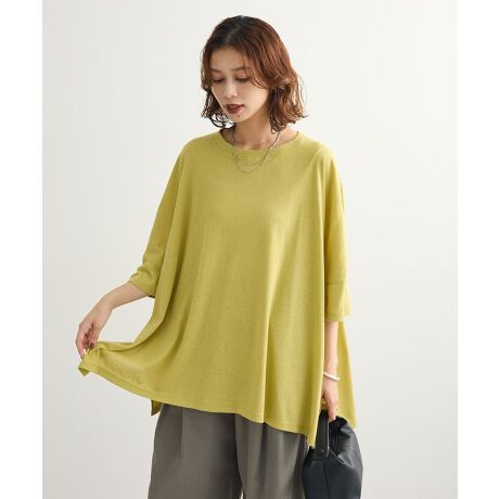 表面感のあるスラブ糸を混紡したナチュラルなデザインカットソー。ワイドな身幅のビッグシルエットでライトに着用いただけるカジュアルな1枚です。切り替えカットの袖口やサイドスリット入りのこなれ感あるディテールもおしゃれなポイント。コンパクトなボトムを合わせればメリハリのあるこなれたスタイリングをお楽しみ頂けます。透け感[ややあり]