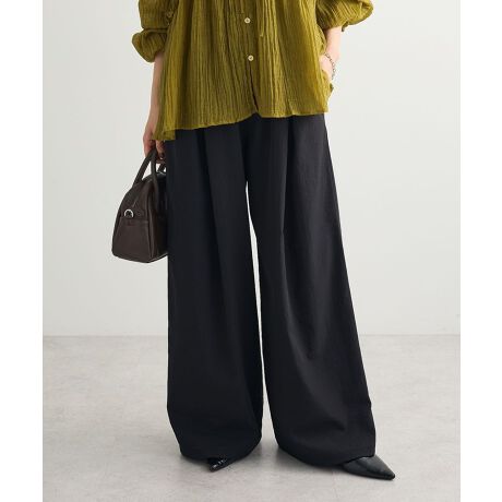 さらりとしたテキスタイルでライトな穿き心地のデザインパンツ。ウエストラインにタックを加えたカーブフォルムが特徴です。バレルアレンジが可能な裾ドロストコードや後ろポケットのワークなディテールも魅力的。ワントーンで着回しやすく、デイリーに合わせていただけるおすすめのアイテムです。透け感[なし]