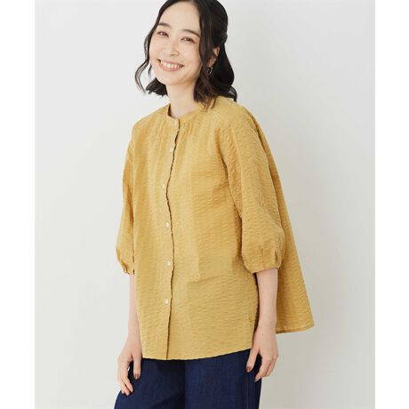 ぽこぽことした表面感が可愛らしいパフスリーブブラウス